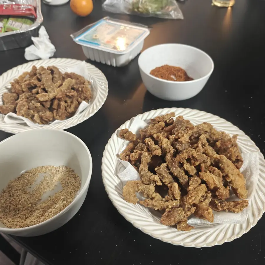前些天去朋友家里聚餐, 本来说好我不做饭最后帮忙打扫卫生, 说着说着就炸了个小酥肉, 第一次做, 很美味, 之后会更新食谱, 等回去做给家人吃.