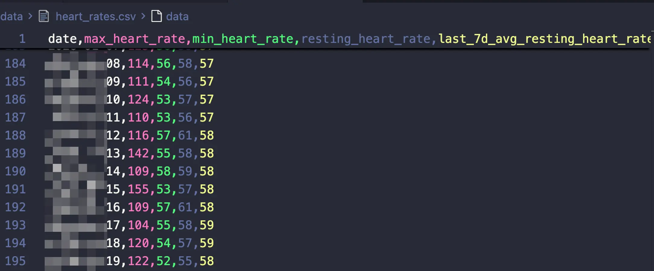 爬取到的数据是JSON, 但因为我只有一个手表, 很多行都是无效的, 因此需要格式化一下数据, 我选择了用csv进行存储, 这样看起来更直观.